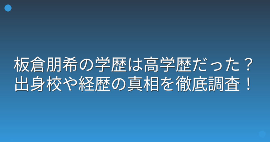 板倉朋希の学歴は高学歴だった?出身校や経歴の真相を徹底調査!