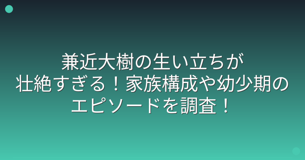 兼近大樹の生い立ちが壮絶すぎる!家族構成や幼少期のエピソードを調査!