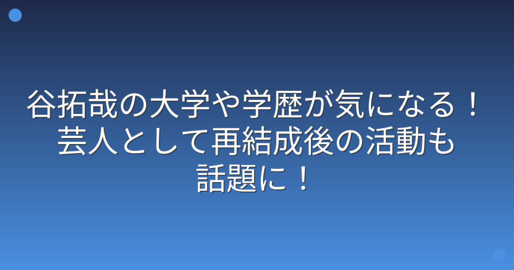 谷拓哉の大学や学歴が気になる!芸人として再結成後の活動も話題に!
