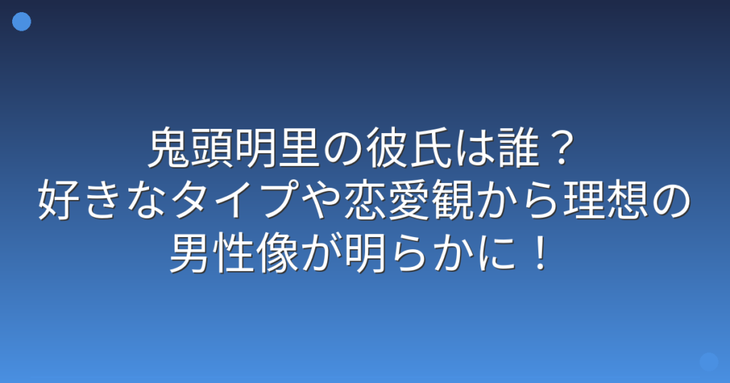 鬼頭明里の彼氏は誰?好きなタイプや恋愛観から理想の男性像が明らかに!