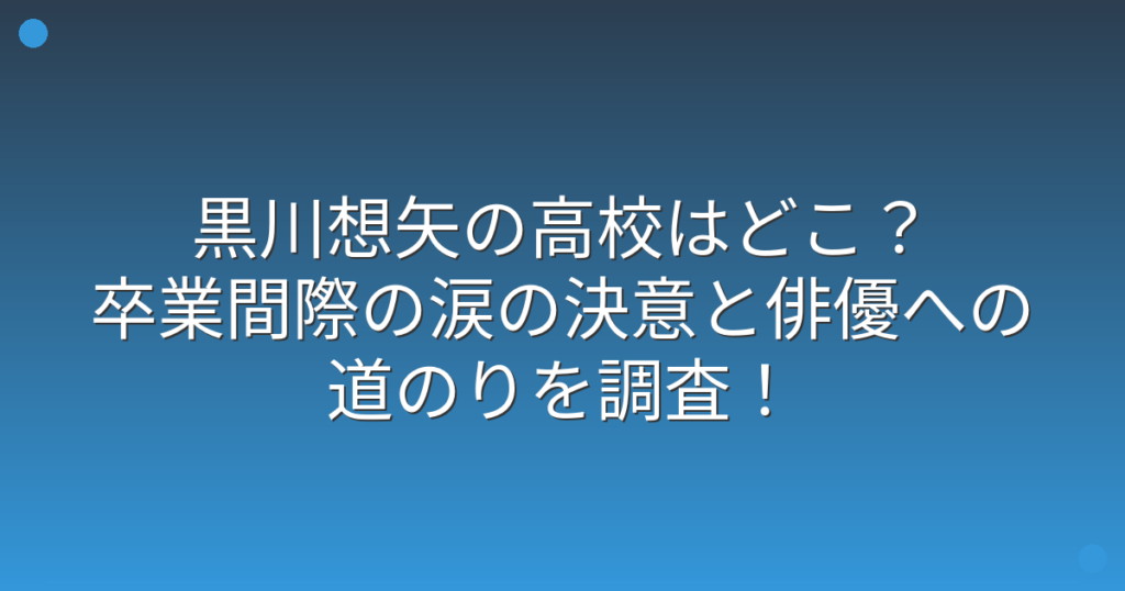 黒川想矢の高校はどこ?卒業間際の涙の決意と俳優への道のりを調査!