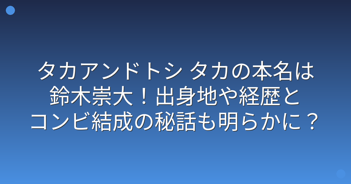 今回は、タカアンドトシ タカさんの本名や出身地、経歴や現在の活動状況についてお伝えしてきました。
