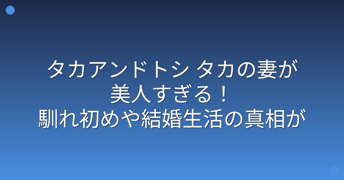そこで今回は、タカアンドトシ タカさんの妻について、詳しく見ていきましょう!