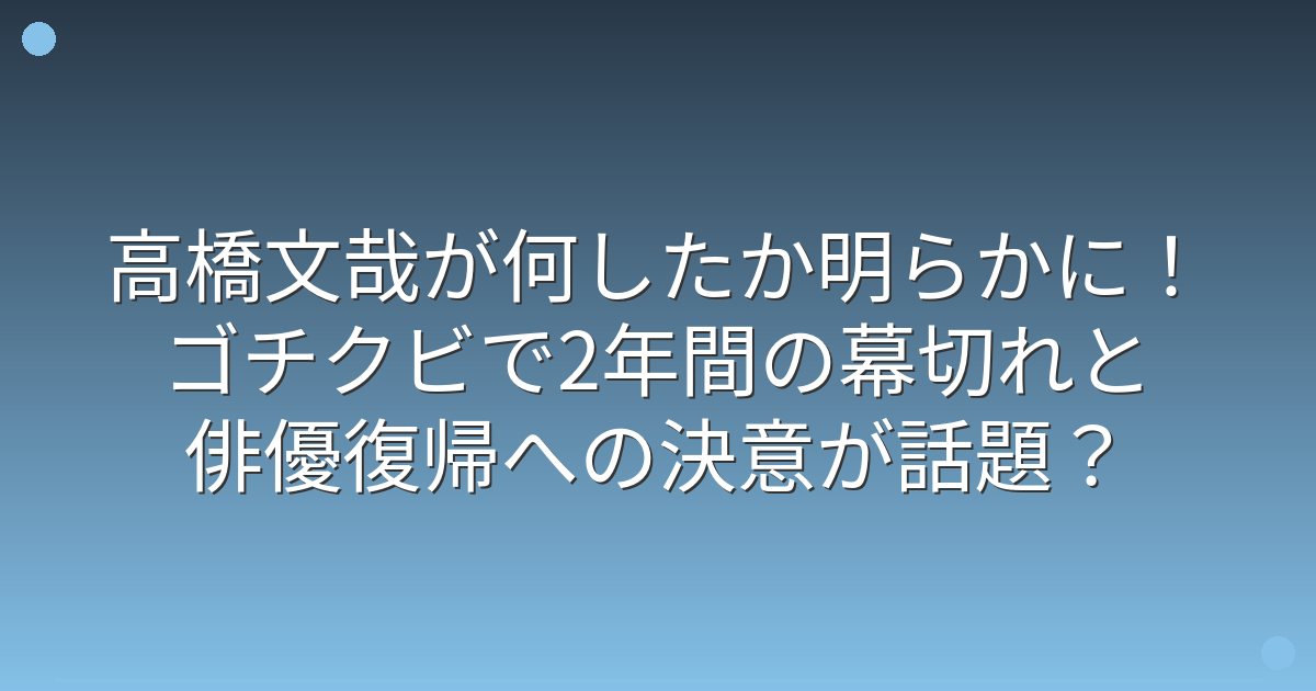 そこで今回は、高橋文哉さんが何をしたのか、クビの経緯や本人の反応、そして今後の展望について詳しく見ていきましょう!