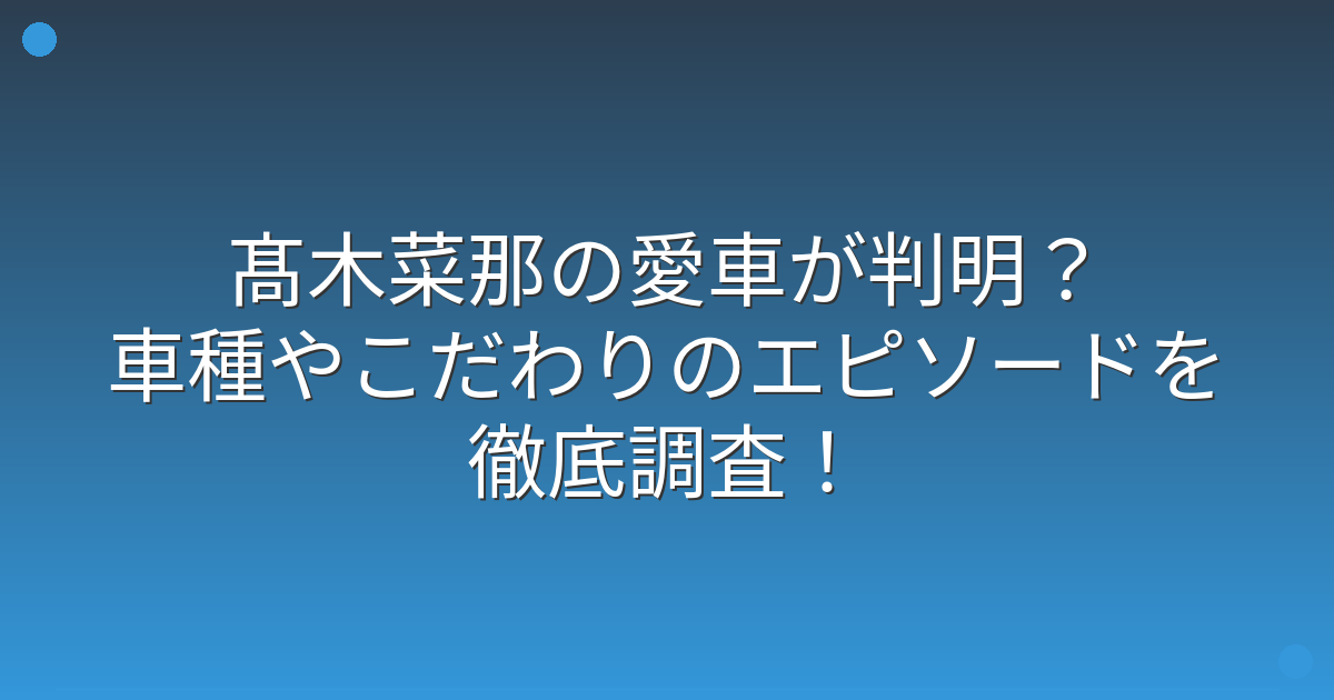残念ながら、髙木菜那さんが現在どのような車種に乗っているのかという具体的な情報は公開されていません。