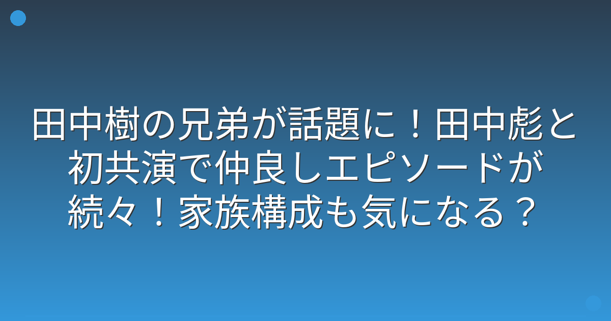 田中樹さんには2人の兄がおり、特に次兄の田中彪さんとは舞台での共演を果たすなど、良好な関係を築いていることが分かりました。