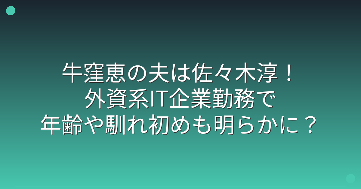 そこで今回は、牛窪恵さんの夫・佐々木淳さんについて、わかっている情報をわかりやすく整理してご紹介します。