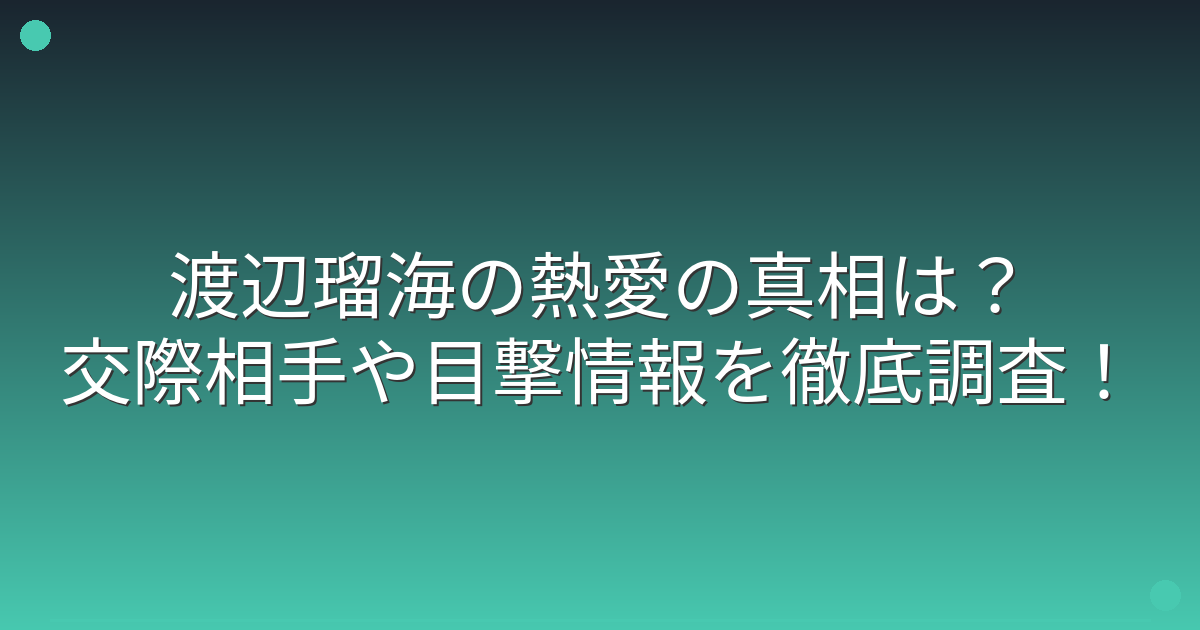 そこで今回は、渡辺瑠海さんの熱愛の真相や交際相手、目撃情報について詳しく見ていきましょう!