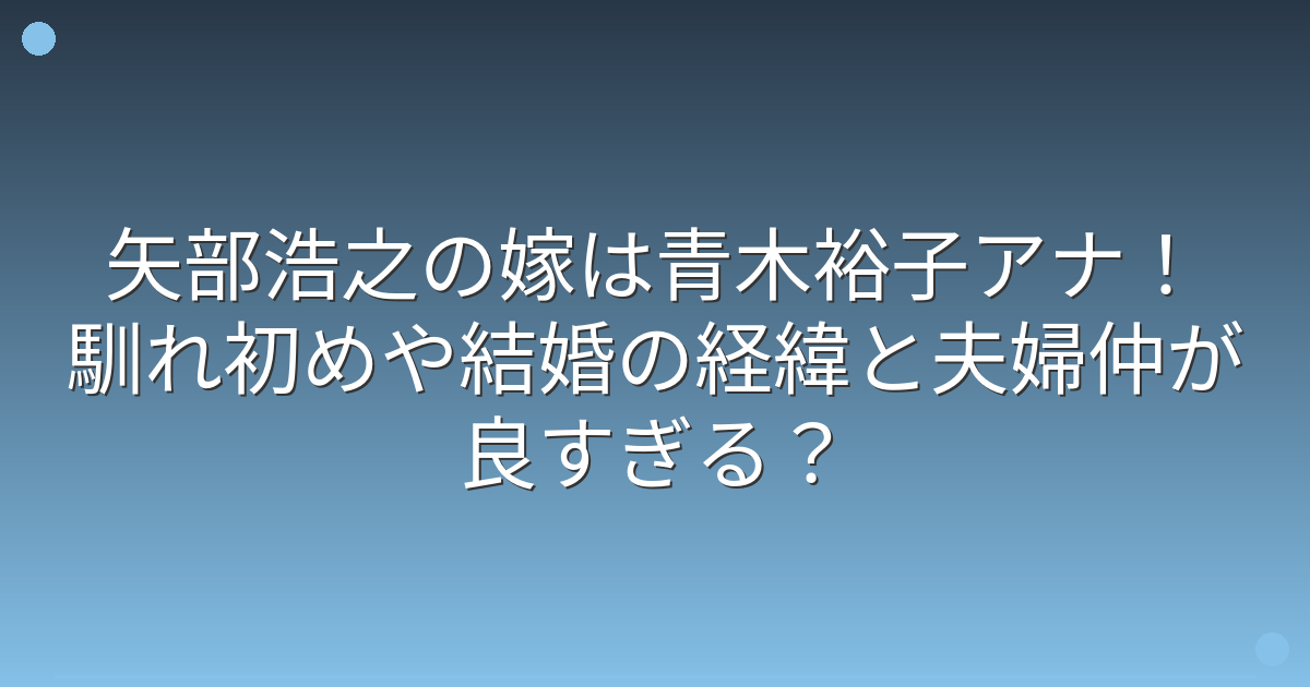 矢部浩之さんの嫁は、元TBSアナウンサーの青木裕子さんです。