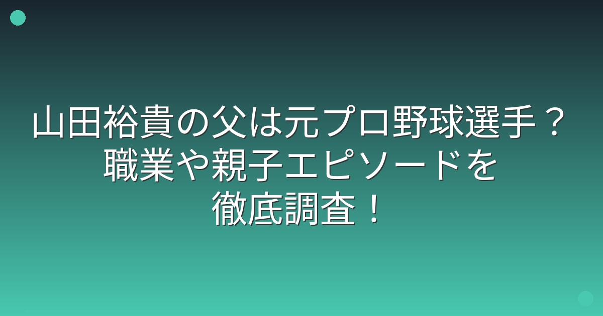 山田裕貴さんの父親の現在の職業については、関係者の話では野球に関連した仕事に携わっているという情報があります。