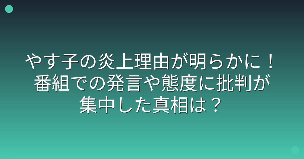 この報道自体は炎上とは直接関係ありませんが、やす子さんのプライベートな一面や人間関係が注目されていることを示しています。