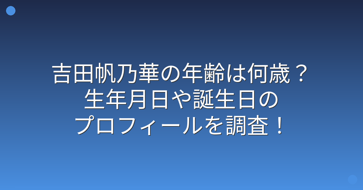 そこで今回は、吉田帆乃華さんの年齢や生年月日、プロフィールについて詳しく見ていきましょう!