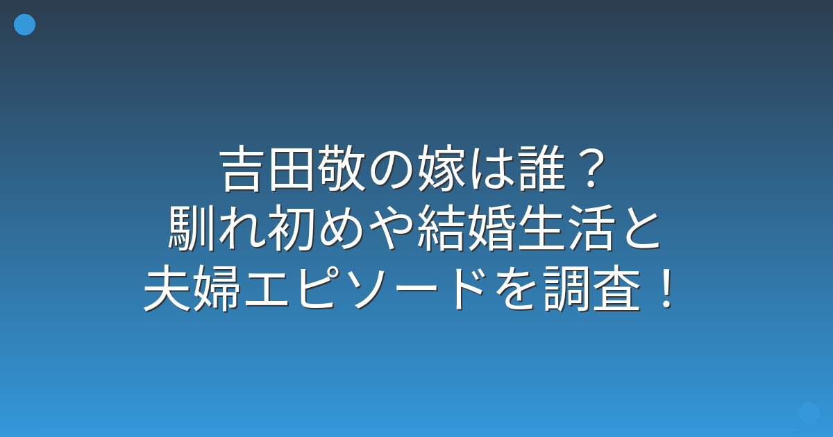 複数の報道によると、吉田敬さんの嫁は芸能界とは関係のない一般の方で、名前や顔写真などは公表されていません。