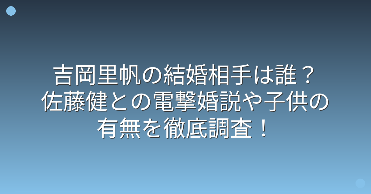 結婚しているという公式発表は一切なく、吉岡さん本人も事務所も結婚に関する情報を公開していないのが事実です。